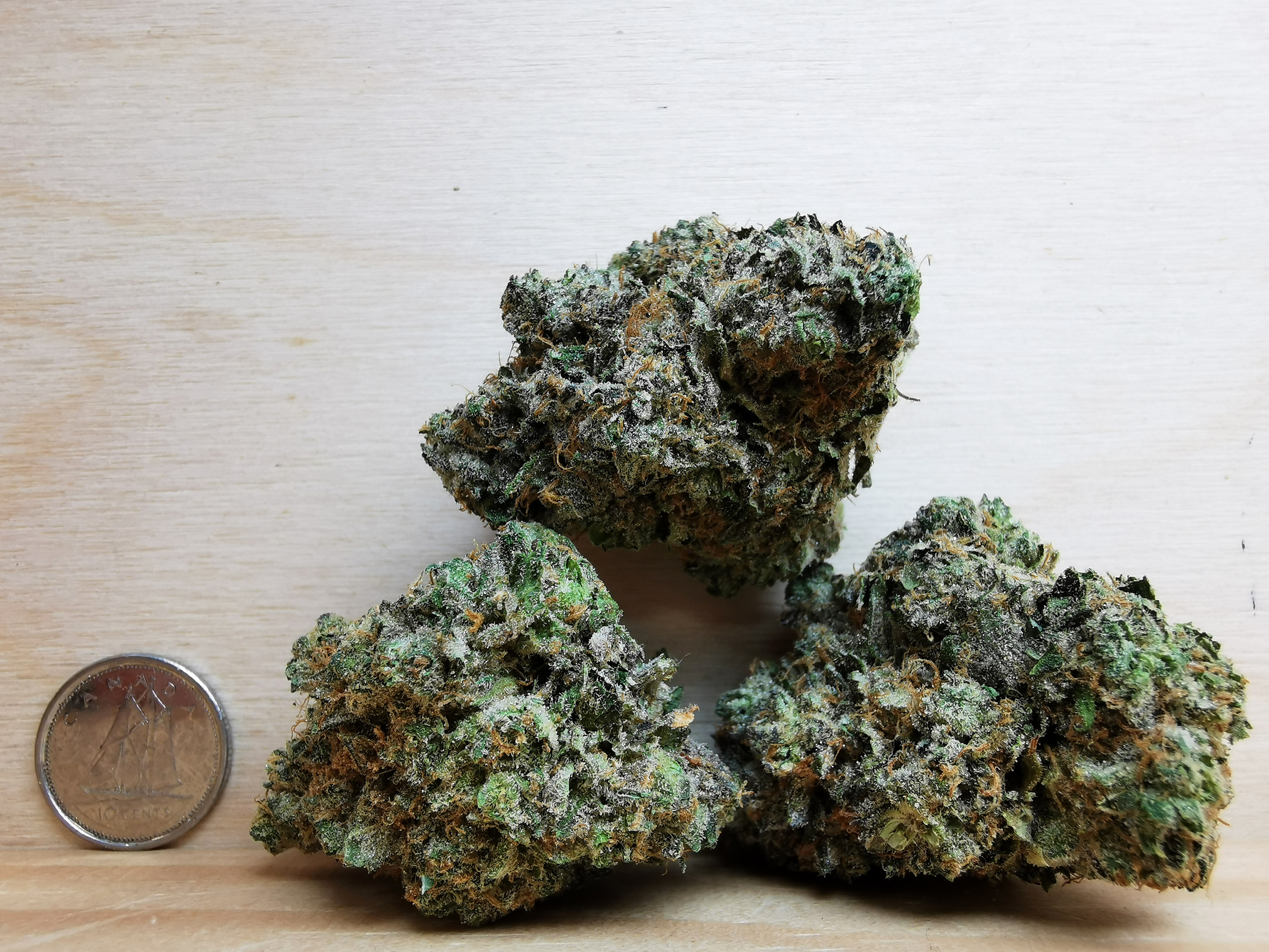 Blue Dream brings a classic West Coast favourite into premium quad territory with a clean, flavourful smoke and eye-catching bag appeal. Consistent quad-level flower and clean terp profiles. This batch stands out with big chunky nuggets, making it a strong pick for smokers who want both quality and visual appeal in the jar.